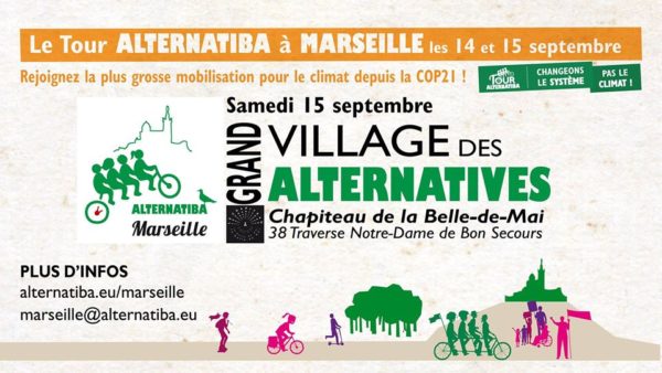 A l’occasion de l’arrivée du Tour Alternatiba à Marseille, Alternatiba Marseille organise un village des alternatives au Chapiteau – la belle de mai.
